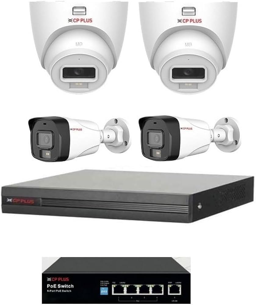 CP Plus Audio 4-camera 2.4MP Color Night Vision IP Camera kit 2Dome 2 Bullet