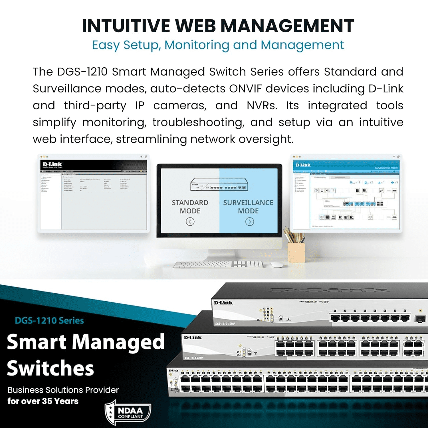 24 Port 10/100/1000 Base-T + 4 x Combo Gigabit UTP or Gigabit SFP slots Loopback detection (LBD) and broadcast storm control to avoid network downtime