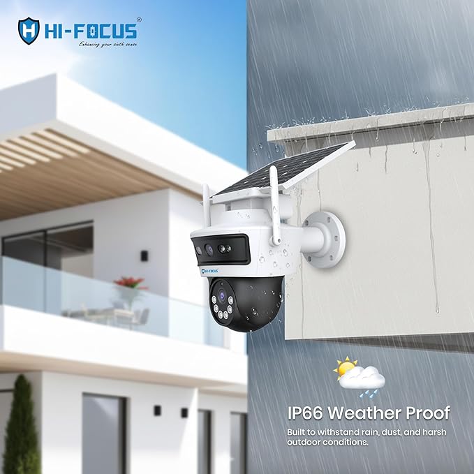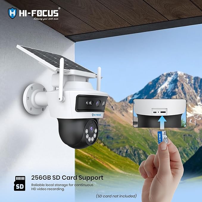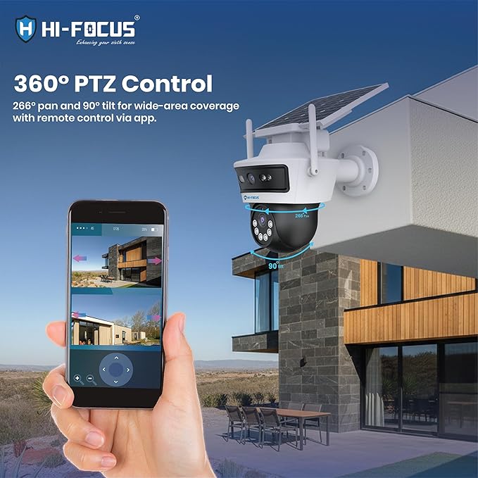 HIFOCUS 3MP Dual Lens 4G Solar CCTV Camera, Dual View Outdoor PT Security Camera, SIM Supported, Color Night Vision, PIR Motion Detection, Two-Way Audio