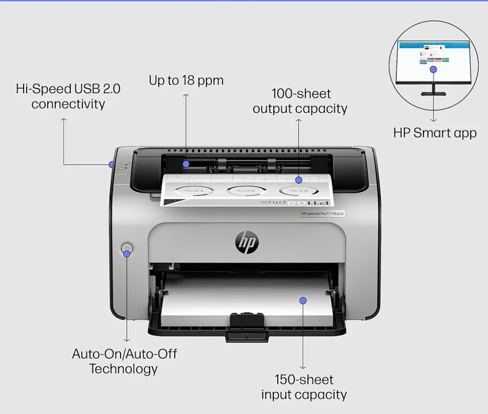 HP Laserjet Pro P1108 Plus Single Function Monochrome Wired Laser PrintersBrandHP