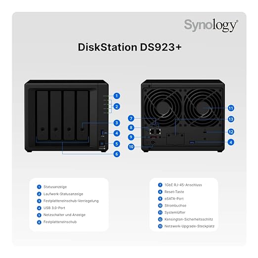 Synology DS923+ 4-Bay Diskstation NAS (AMD Ryzen™ 4 Threads R1600 Dual-Core 4GB Ram 2xRJ-45 1GbE LAN-Port) 32TB Bundle with 4X 8TB Seagate IronWolf