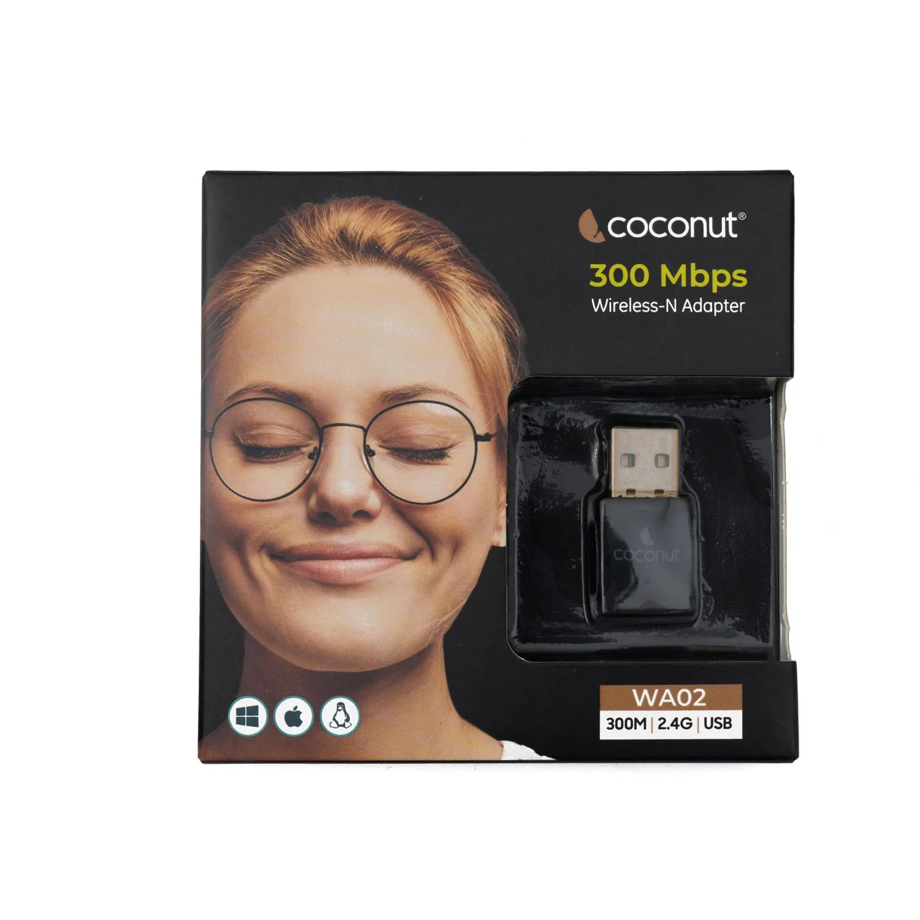 Experience lightning-fast wireless connectivity with the Coconut WA02 wireless adapter, boasting an impressive data transfer rate of 300 Mbps, allowing for quick and efficient file transfers, smooth streaming, and lag-free online gaming.