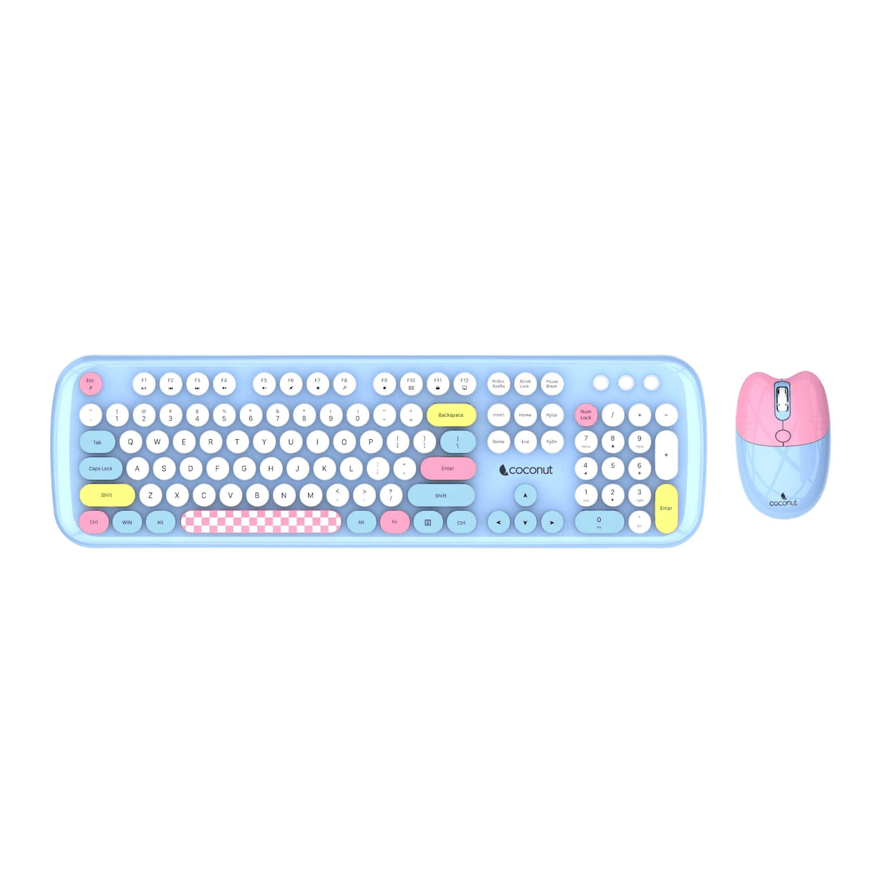 The Daisy Retro Wireless Combo in blue features a chic, retro design with a wireless keyboard and mouse, blending nostalgic style with the convenience of modern wireless technology.