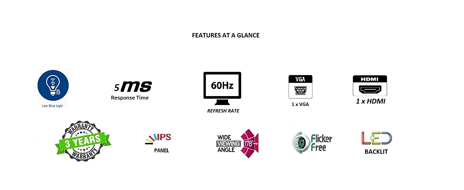 | Included Components | Monitor with Stand, Power Cable, Power Adapter, VGA Cable, HDMI Cable |