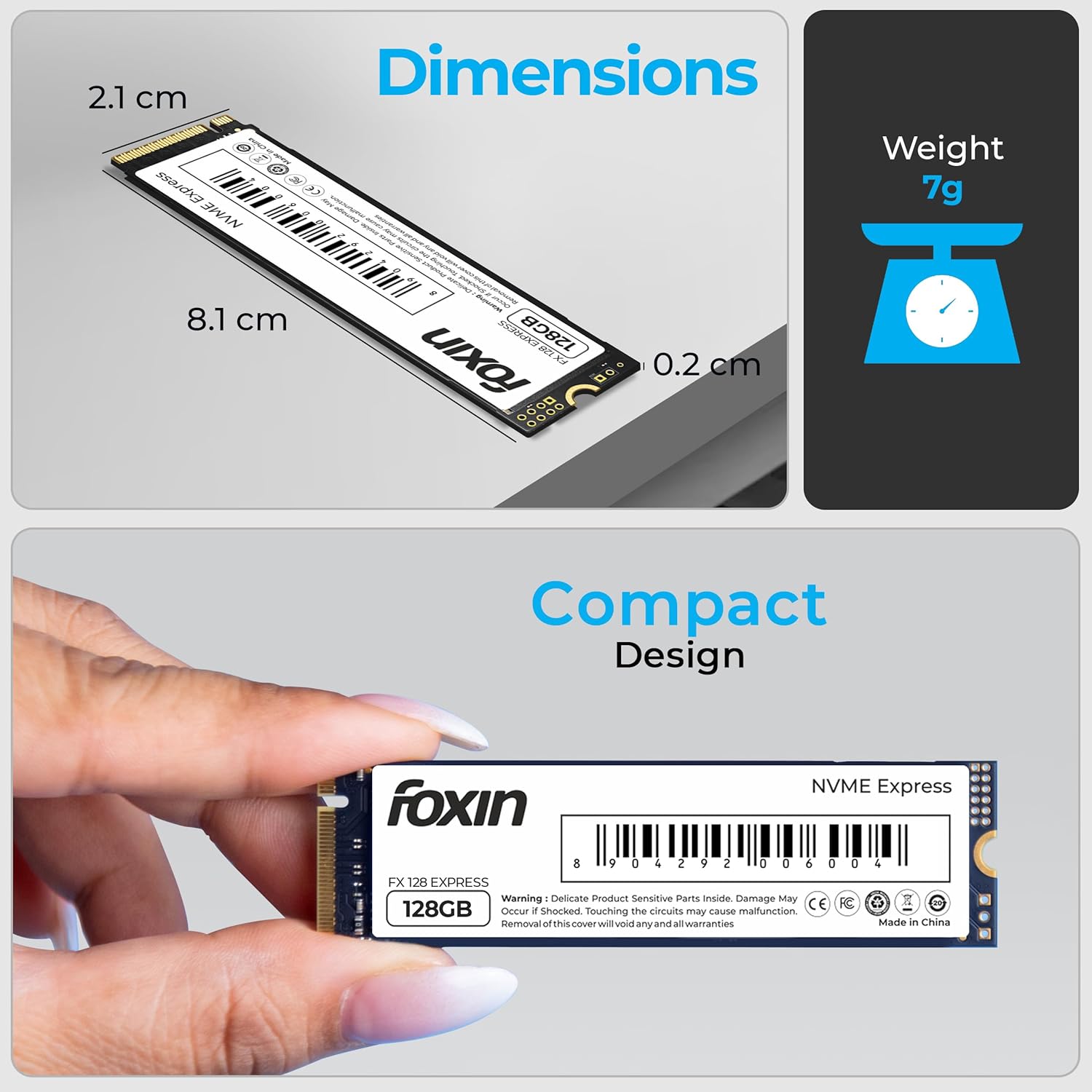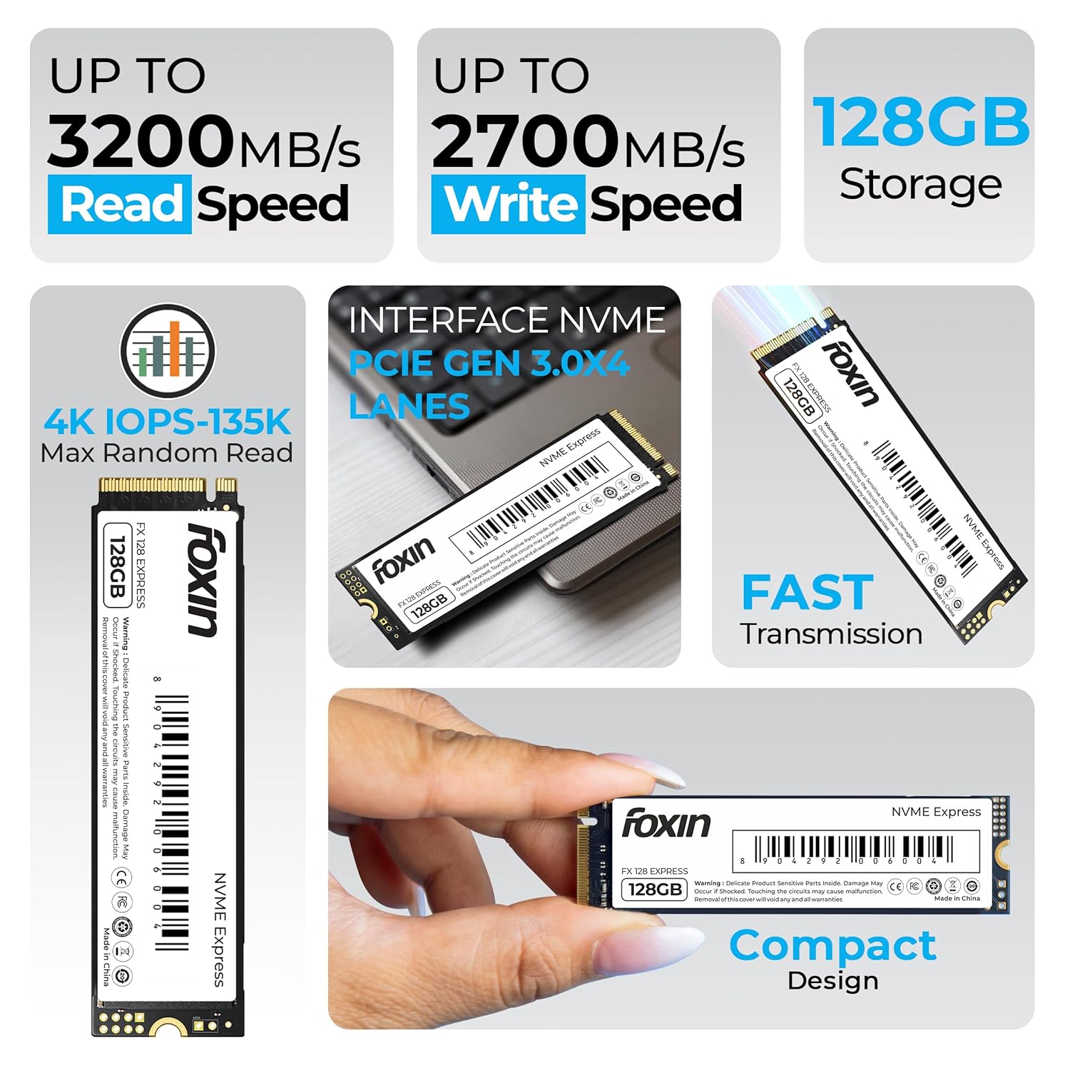 Foxin 128GB NVMe M.2 SSD | PCIe Gen 3.0 x4 Internal Solid State Drive With 3200MB/s Read, 2700MB/s Write | Micron Chipset, SMI Controller | Ultra-Low Power Consumption | 5-Year Warranty