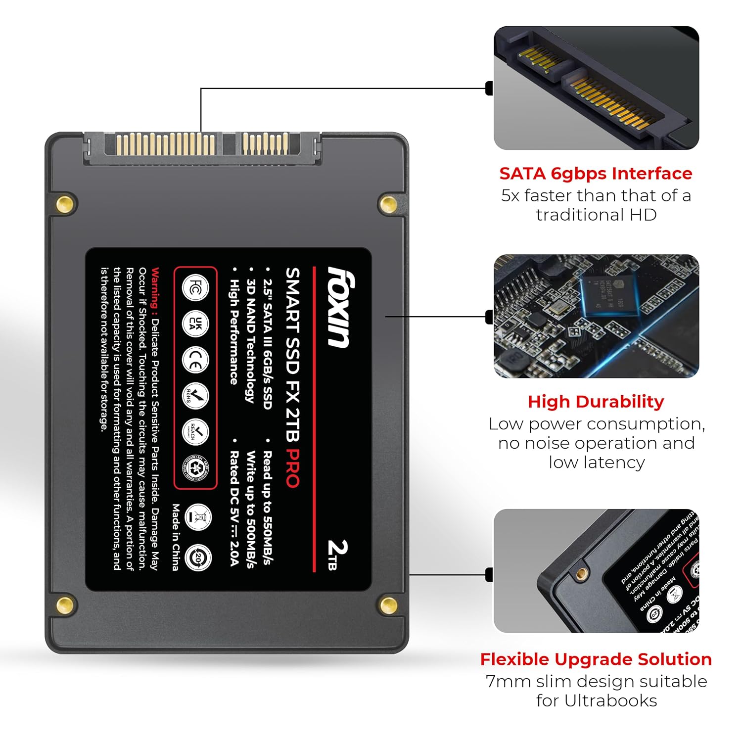 Foxin 2TB PRO SSD | Internal Solid State Drive | 3D NAND Technology & 2.5 Inch SATA III 6GB/S | Read/Write Speed Upto – 550/500 MB/s | Compatible with PC/Desktop/Computer/NVR/DVR | 5 Yrs Warranty