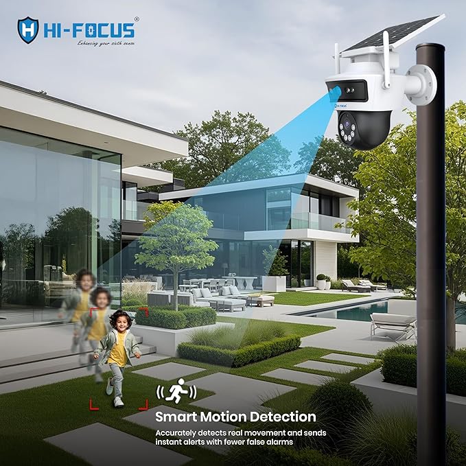 HIFOCUS 3MP Dual Lens 4G Solar CCTV Camera, Dual View Outdoor PT Security Camera, SIM Supported, Color Night Vision, PIR Motion Detection, Two-Way Audio