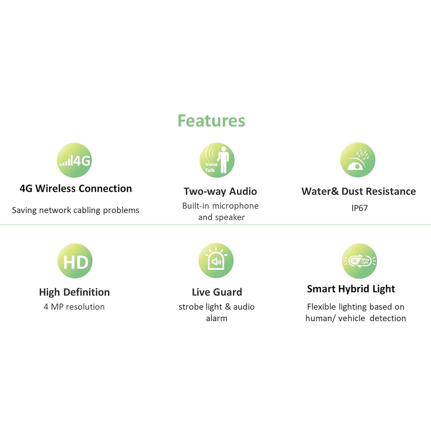- Support 4G LTE data transmission & Provide real-time security via built-in two-way audio