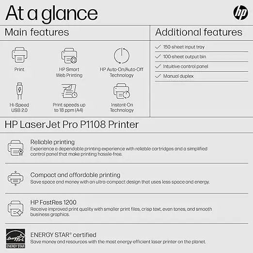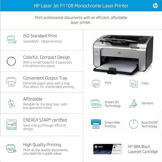 HP Laserjet P1108 Single Function Monochrome Laser Printer